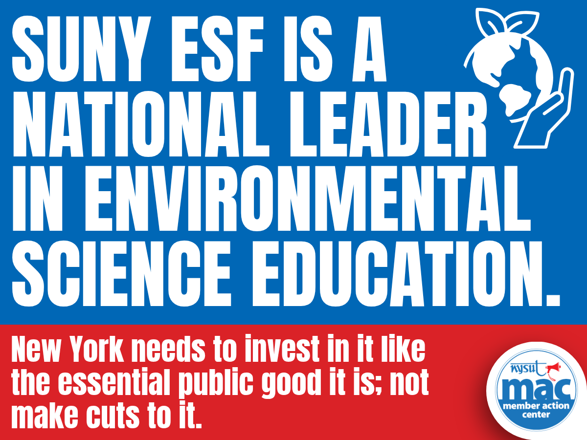 SUNY ESF is a national leader in environmental science education and research, drawing students from across the country to address the most pressing issues facing our planet. Its graduates are highly skilled and in high demand at the Department of Environmental Conservation, throughout private industry and in emerging green-economy jobs. If we are serious about climate action, sustainability and building a skilled workforce, we must invest in the institution already doing this critical work.